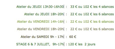 En attendant voici le nouveau tableau du calendrier des séances mensuelles à l’Atelier .