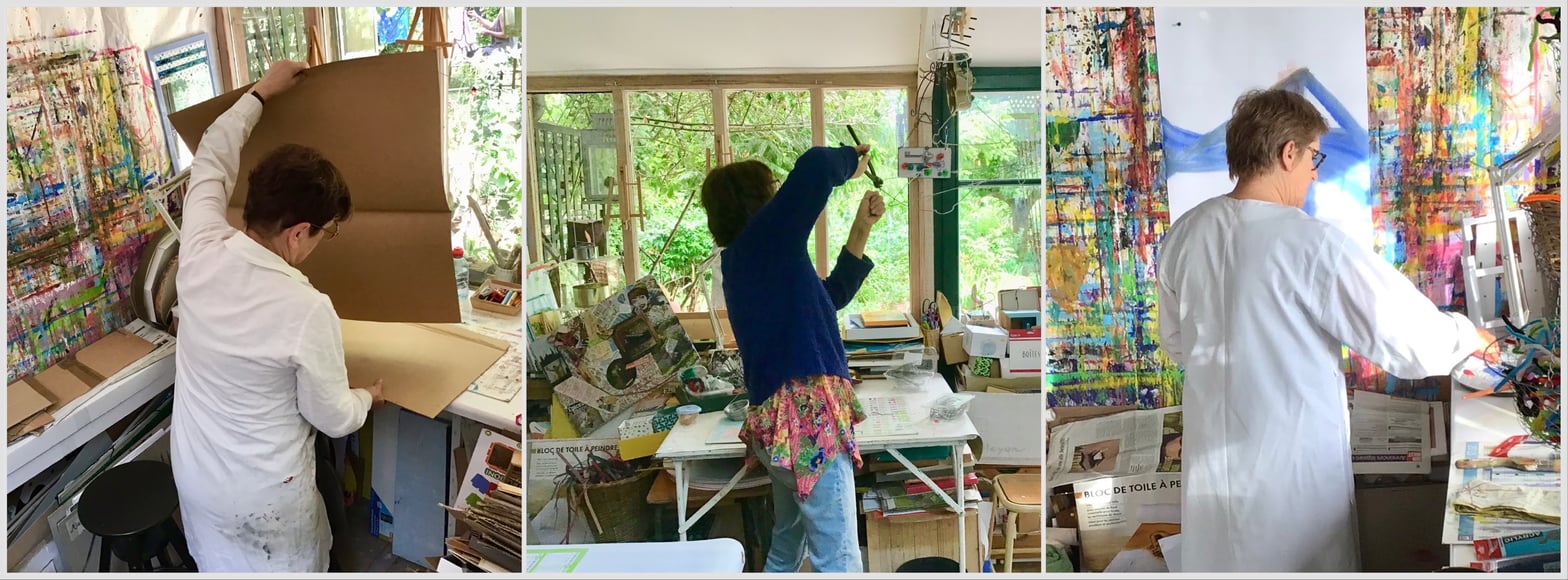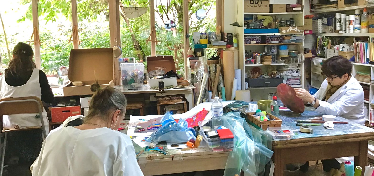 C’est aussi par la succession de nos séances à l’Atelier, à un rythme régulier, que nous pouvons constater au fil des mois un processus similaire, une sorte de tissage en nous, au sein de notre propre expression qui crée.