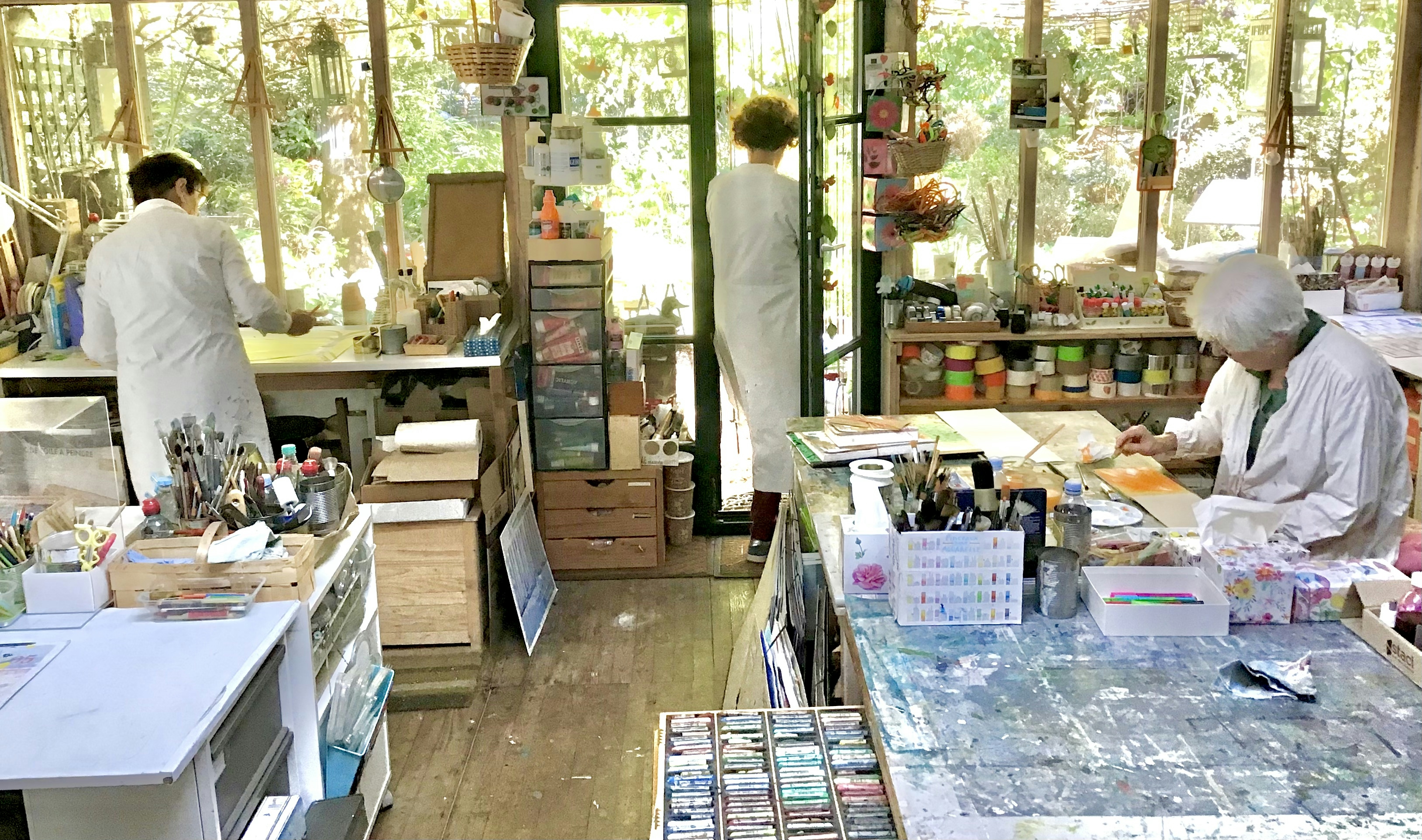 Dans ce temps présent là on se rend libre de ses habitudes, hors de son environnement social, de ses devoirs, libre alors de s’ouvrir à l’étonnement de son pouvoir de création, toujours neuf, né dans l’instant présent, régénérant. On apprend de soi, de sa posture, de ses gestes, de la faisabilité et des réactions des matériaux, ici et là avec une technique qui se fait jour, se cultive et s’enrichit tant qu’elle nous fait plaisir.
